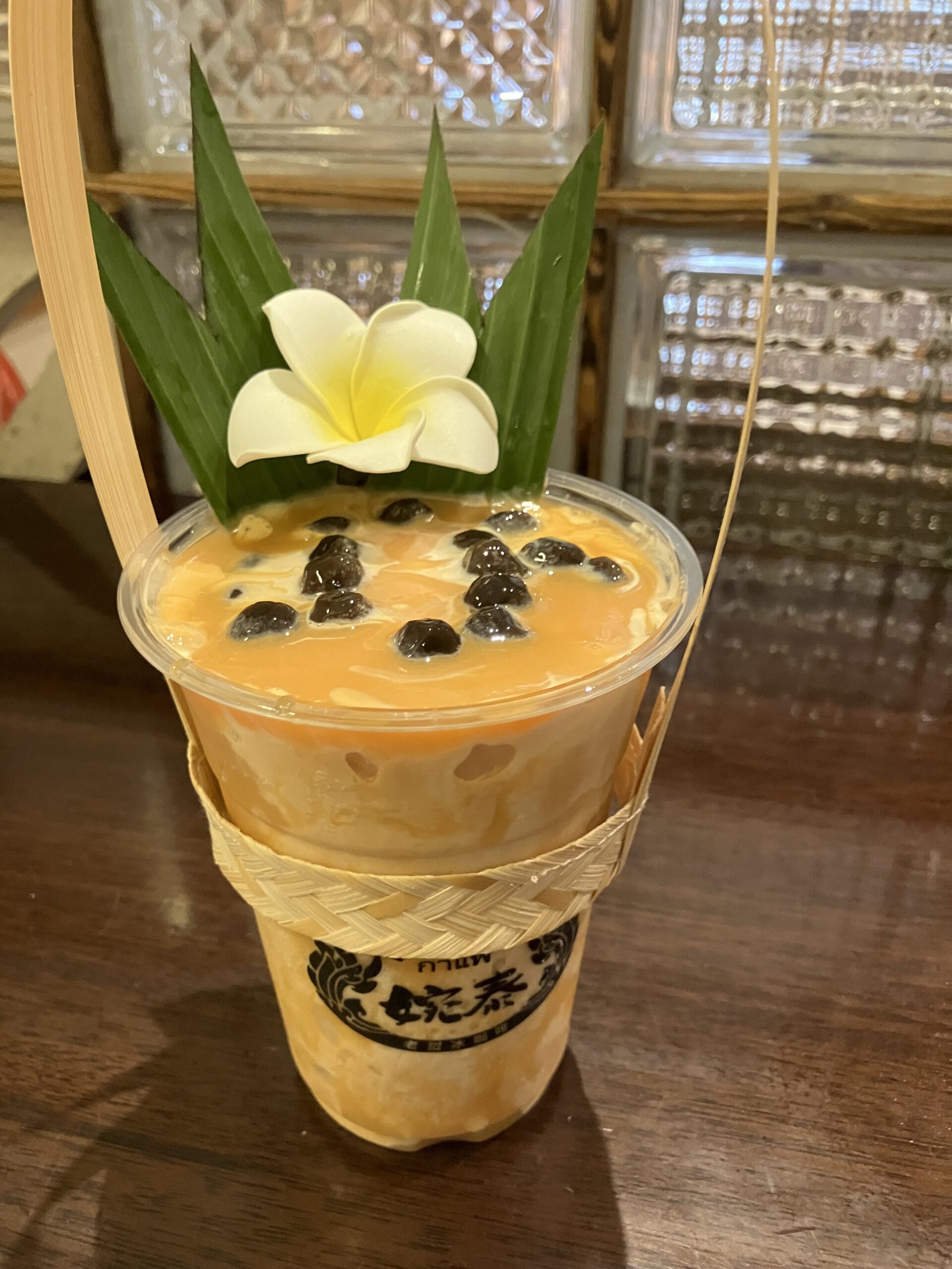 広東のマンゴー系デザートといえば、マンゴープリンや楊枝甘露となるが、タイではマンゴーにもち米とココナツミルクを合わせた「もち米マンゴー」(カオニャオ・マムアン:ข้าวเหนียวมะม่วง:Mango Sticky Rice) が代表的だ。日本のおはぎのように餅として加工してあるならともかく、そのままのもち米をデザートとして出されることに最初は抵抗があったが、慣れてしまえば妙な依存性がある。もっとも近年のバンコクでは、おしゃれなマンゴーデザートの店がそこかしこに増殖し、オジサンだけでは入店しにくかったりもするのだが。