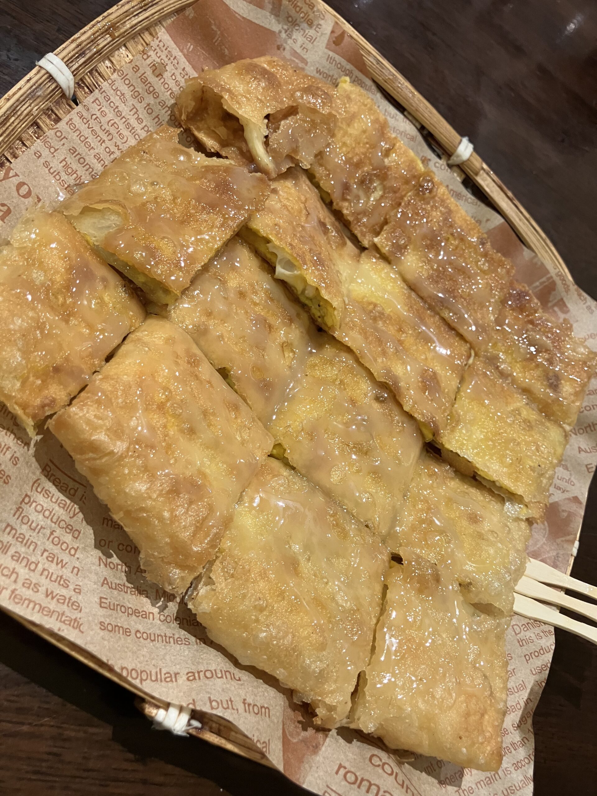 こちらのもち米マンゴーは、ココナツミルクを使用。もち米のカラーリングもじつに四色と、頑張っている。問題は、とても一人では食べきれない量と、完熟ではないマンゴーだ。季節の問題もあるが、マンゴーの酸味が強ければ、やはりもち米マンゴーは楽しめない。試行錯誤の末、これについてはタイで食べた方が断然、安くて美味しい。というあたり前の結論に落ち着いた。