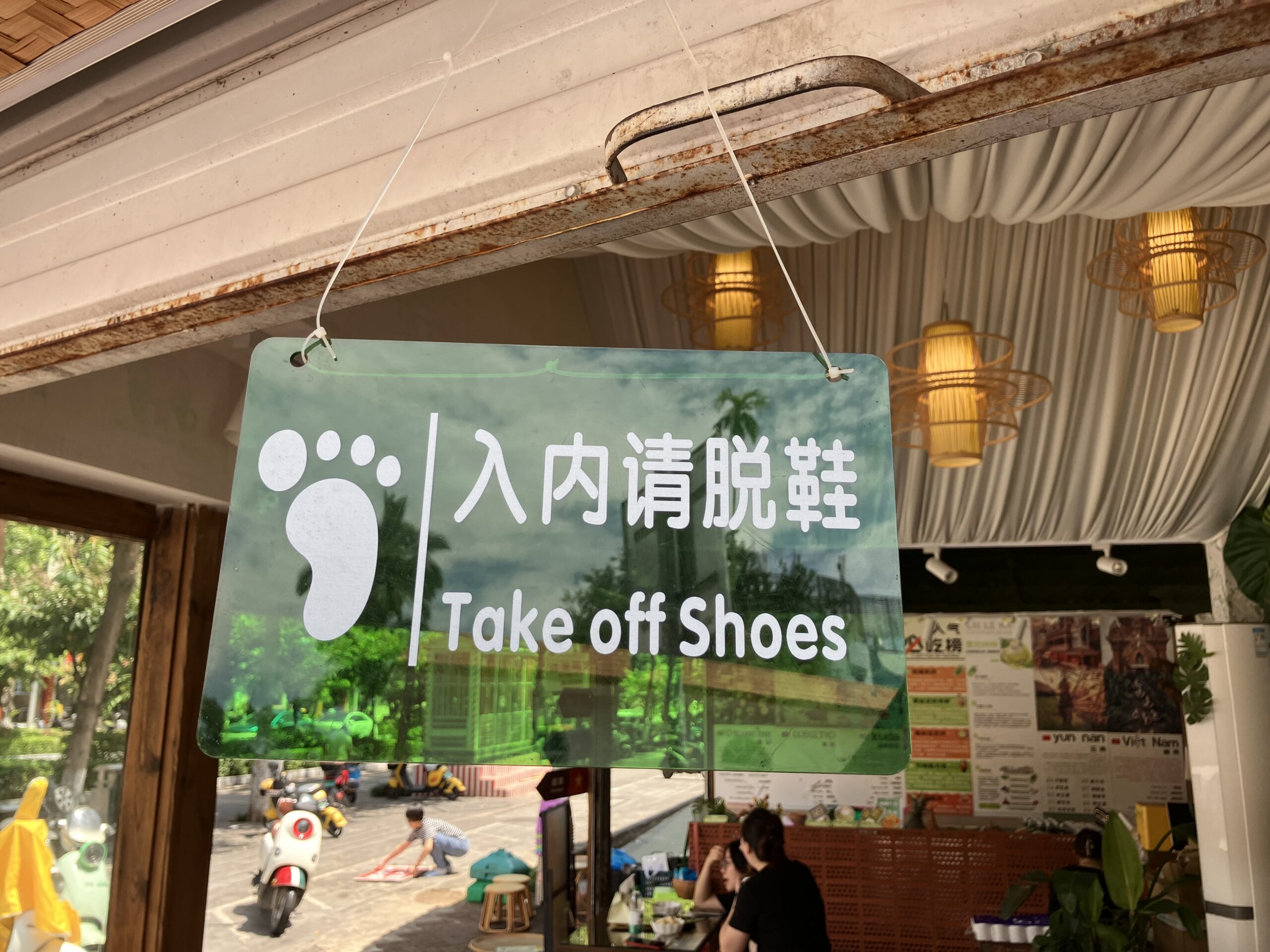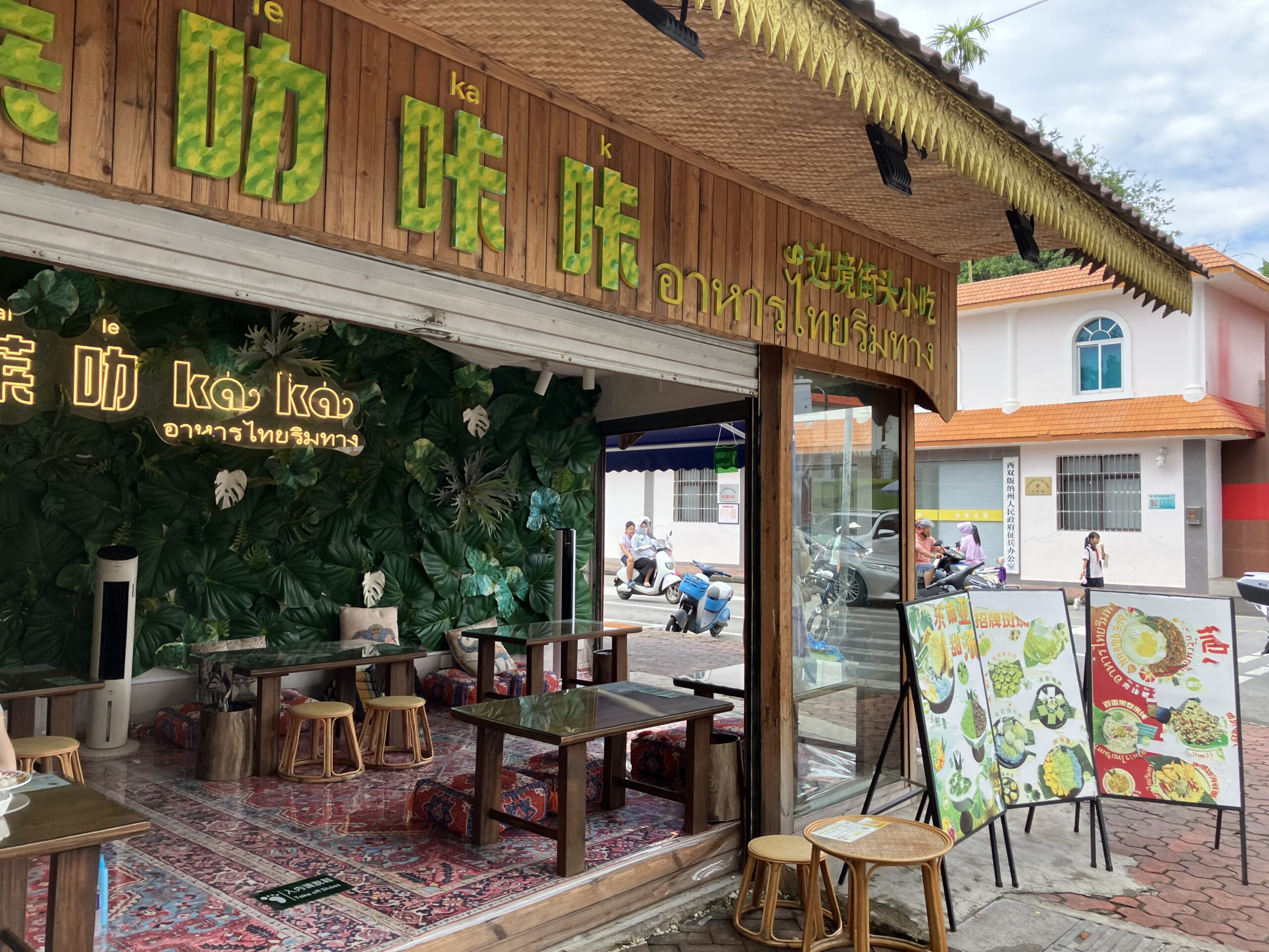 西双版納の中心地、景洪市の旧市街にオーセンティックな東南アジア料理を揃えるこだわりの強そうな店があったので、ここを訪ねてみる。日本でも最近、とみに人気のガパオライス (ผัดกะเพรา:Phat kaphrao) など、タイ料理を中心にメコン川流域の料理がずらりと並ぶ。オーナーは、この辺りの出身とのこと。オープンエアのカフェだが扇風機も貸してくれるし、なにしろ空が青いので、広州の排ガスまみれ、喫煙者だらけの路上テーブルと比べ、随分気持ちが良い。そして、待望のもち米マンゴーの第一印象は、「なんか色が違う。。。」。あろうことか、ここではココナツミルクの代わりに、ピスタチオのソースがかかっているのだ。メイン顧客の中国人向けのアレンジなのかもしれないが、ピスタチオでは食感がモソモソするし、別に甘い訳でもない。残念ながら、万人にお勧めできるものではなかった。