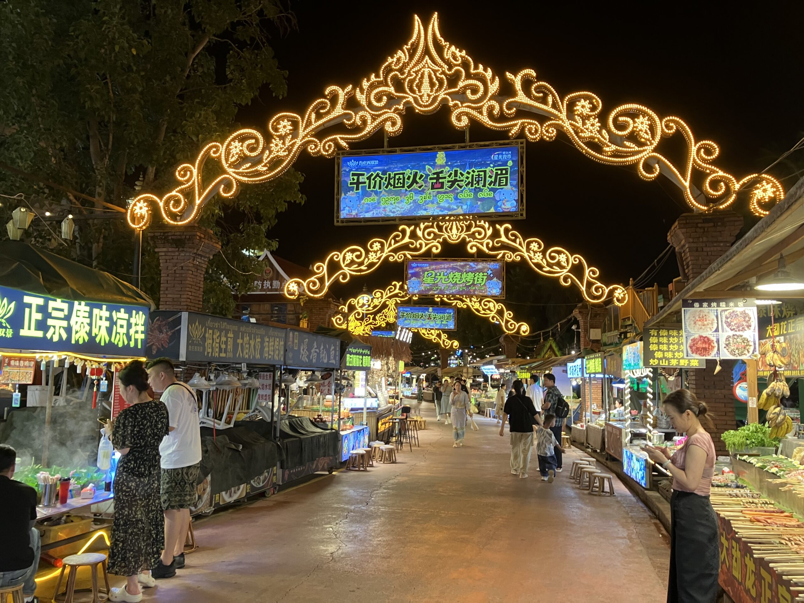 かつてバックパッカーたちの雲南少数民族巡りの拠点でもあった西双版納の景洪市だが、今では市内だけで旅先として十分に完結する観光都市となっている。その目玉の一つが、東南アジア最大と言われるメコン川沿いの夜市だ。旅先の夜は麦ジュースをお供にホテルでダラダラしていたいお父さんたちだって、いざ台湾やタイに赴けば、ナイトマーケットという異質な響きへの期待感から、その重い腰も多少なりとも軽くなるというもの。