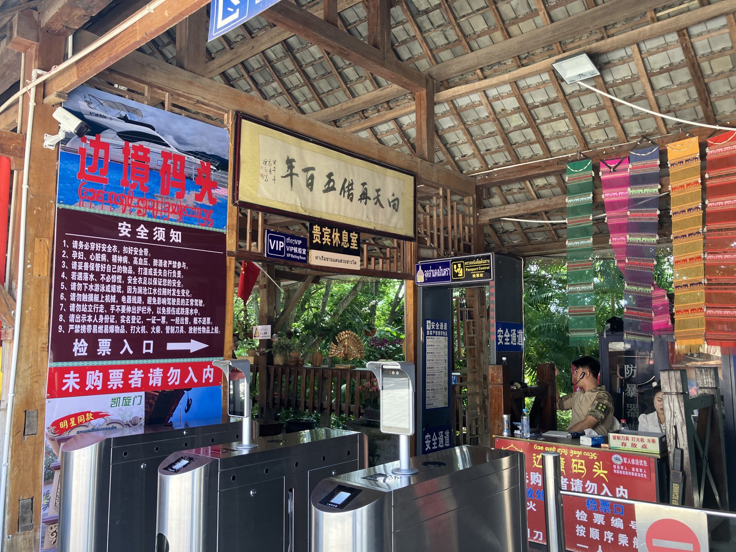 先述したように、橄欖壩 (ガンランパ) の傣族園からは、ラオス、ミャンマーの国境を巡るスピードボートのツアーが発着している。傣族園随一の撮影スポット、6 カ国国境の看板とともに写真を撮るためには、このボートツアーに参加しなければならないのが、行きすぎた資本主義という感じでおもしろい。とはいえ、そんな写真を日本で自慢したら、相当にこじらせた奴と思われかねないが。